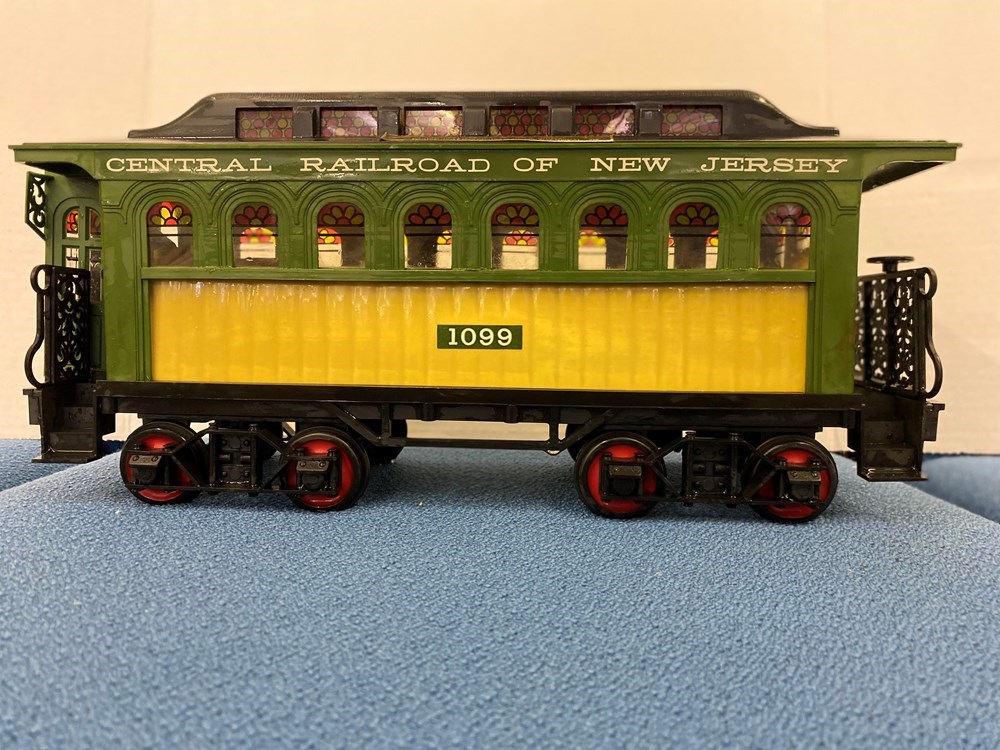 Jim Beam train car decanter. Car 1099, Central Railroad of New Jersey. Contains bourbon, intact seal. Must be 21 to bid.