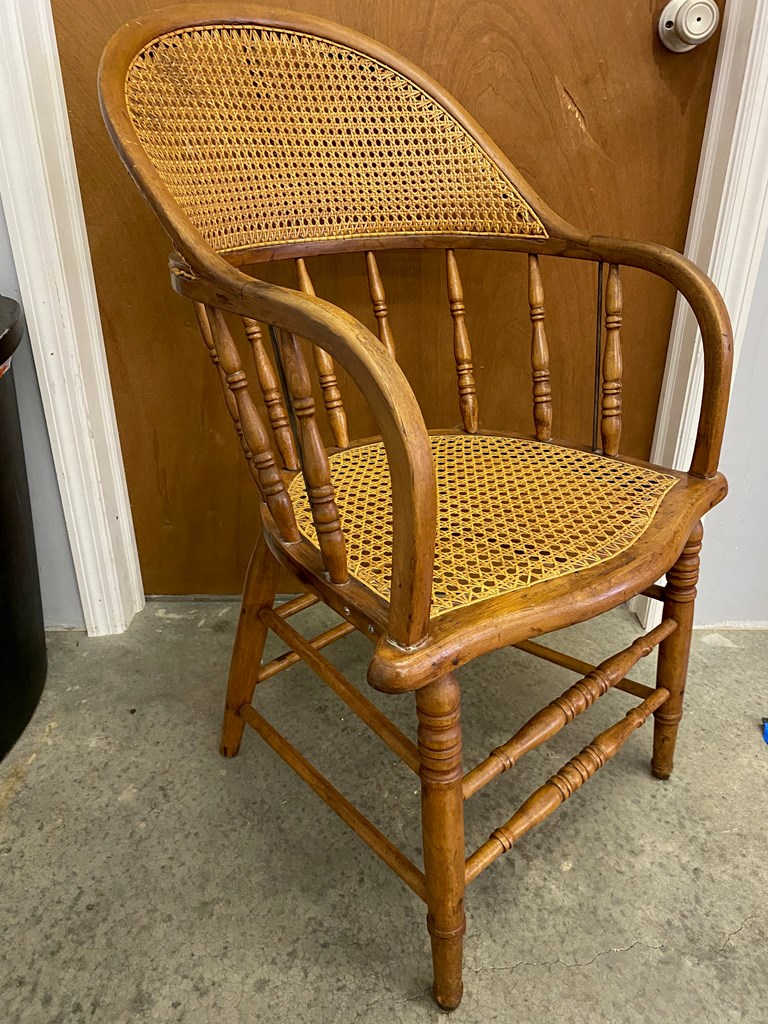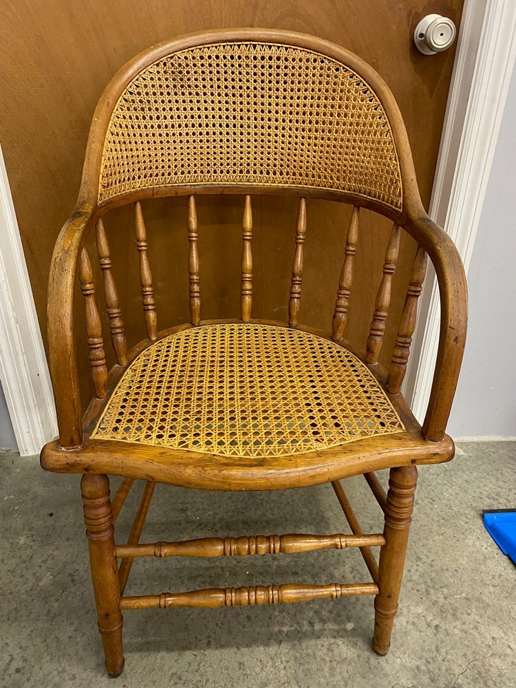 Antique wood and cane club chair. Some wear and small dings. Overall nice condition.